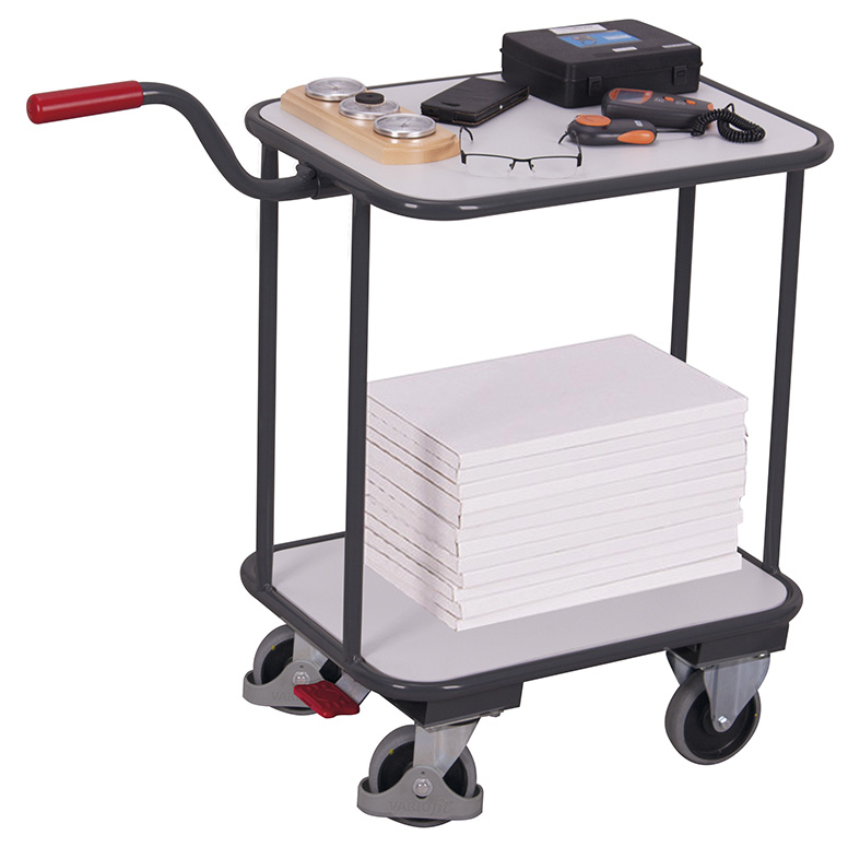 Wózek ESD z uchwytem i 2 powierzchniami użytkowymi VARIOfit sw-450.832 – kompaktowy i bezpieczny transport elektroniki