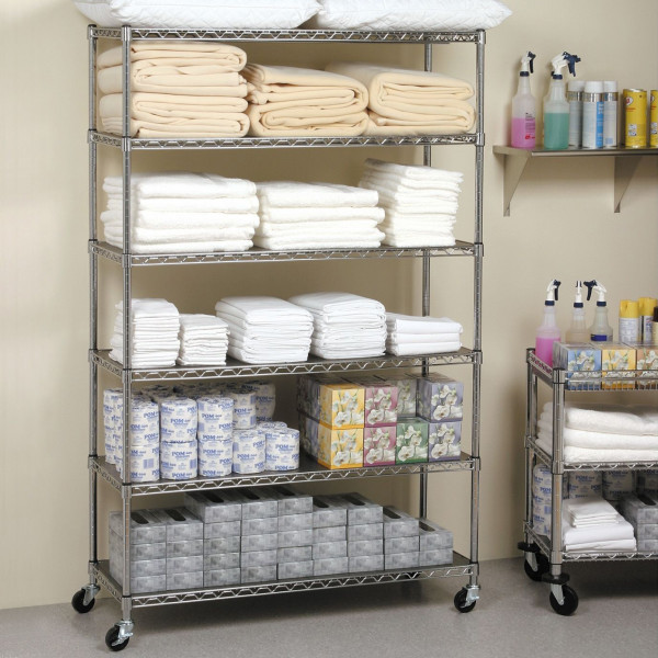 Profesjonalny wózek półkowy o konstrukcji drucianej, przeznaczony do transportu i tymczasowego składowania towarów w magazynach, hurtowniach, sklepach oraz zapleczach technicznych. Stabilna stalowa konstrukcja z chromowanym wykończeniem zapewnia wysoką trwałość, odporność na korozję oraz estetyczny wygląd.